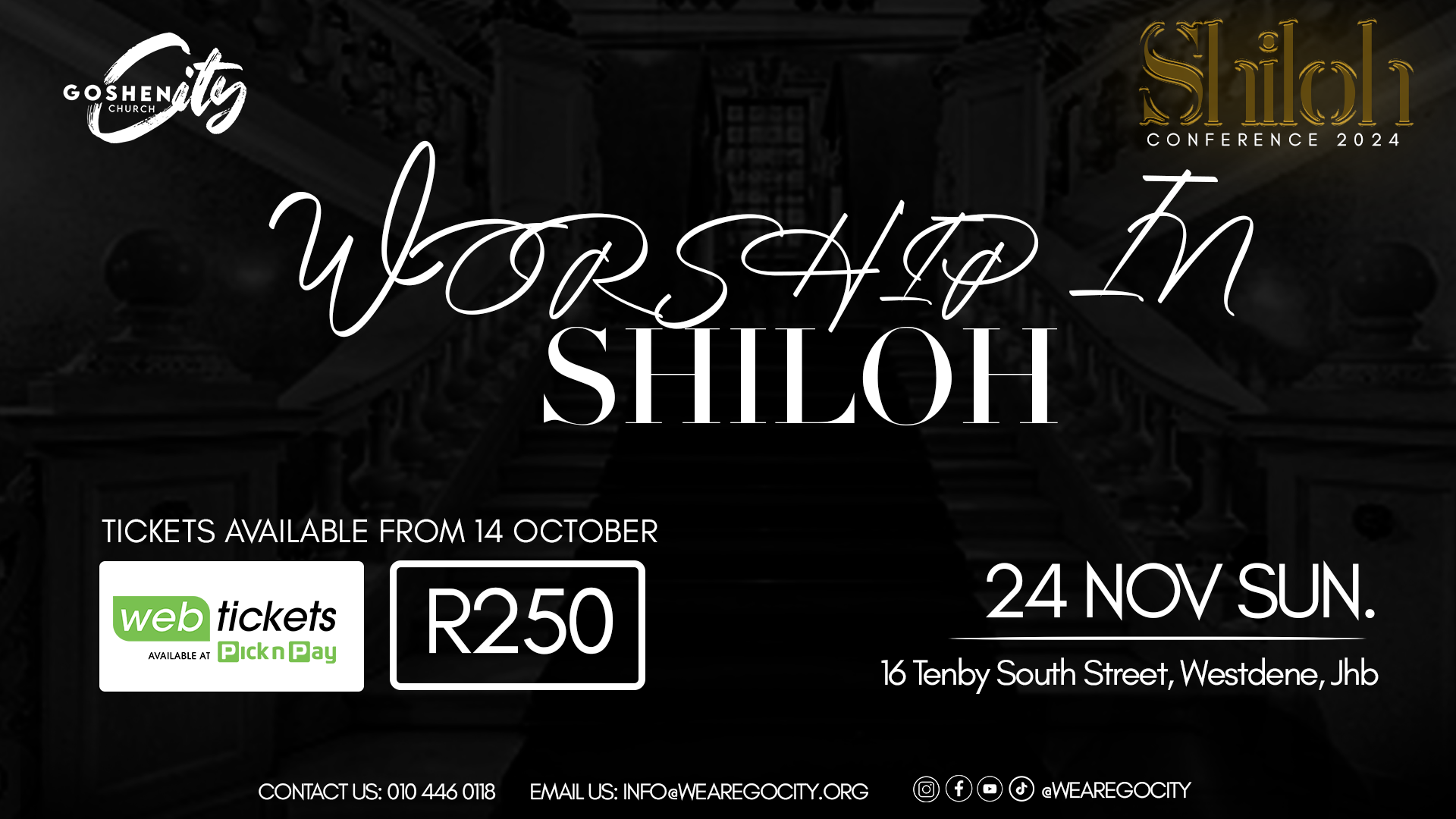 Goshen City Church 16 Tenby S Street, WestdeneAs we close out this year’s Shiloh Conference, join us for Worship in Shiloh on the evening of November 24th, a powerful night dedicated to worship, breakthrough, and divine encounter. Centered around the theme of Forceful Advancement in The Wealthy Place, this worship night will be a transformative experience as we come together in reverence… Read More »Worship In Shiloh